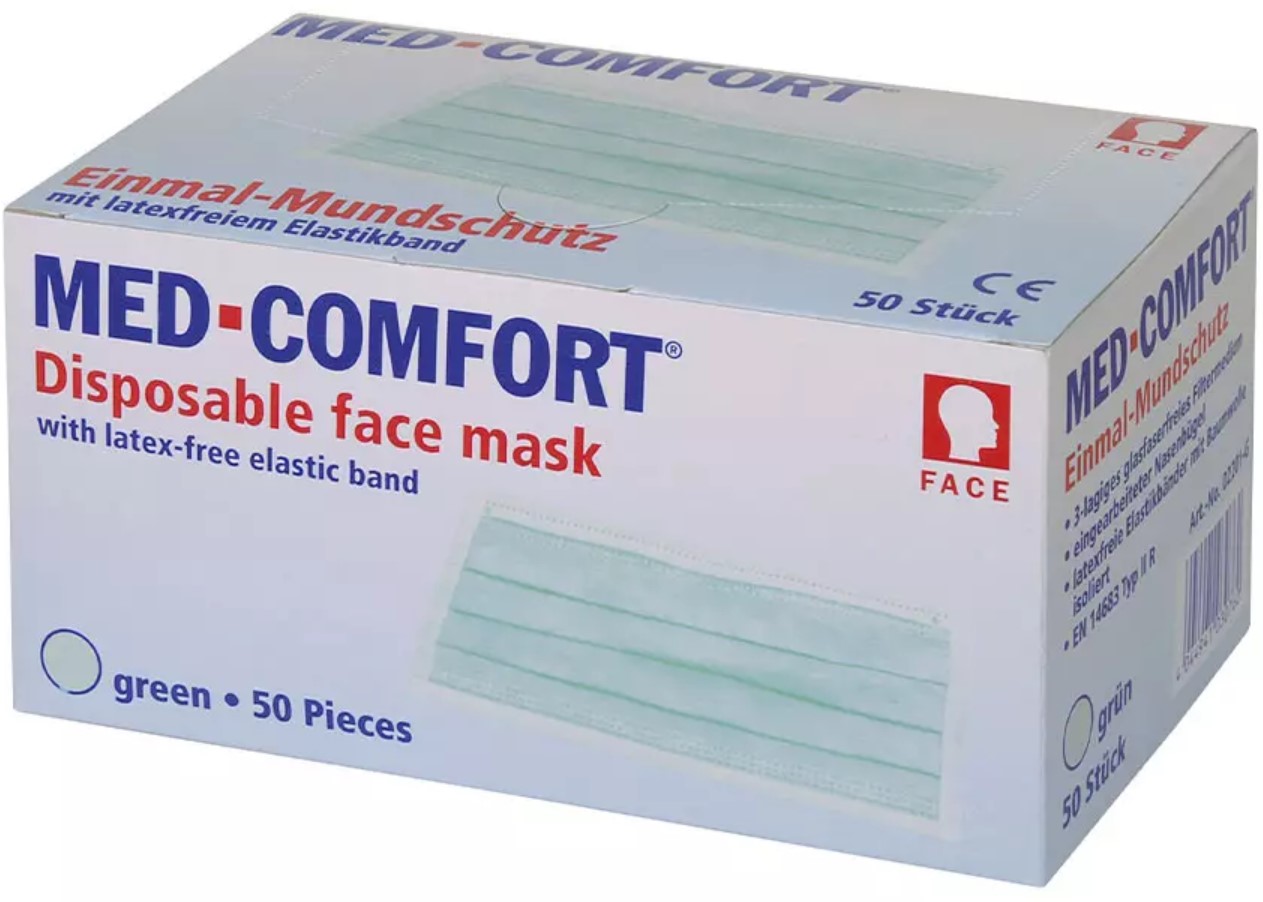 99,6%, hautfreundlich. Mit langem integriertem Nasenbügel, unsteril.