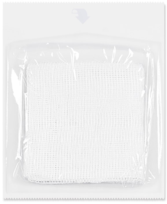 zur Absorption von Exsudaten sowie zur Wundreinigung. Mehrschichtige Gazekompressen
