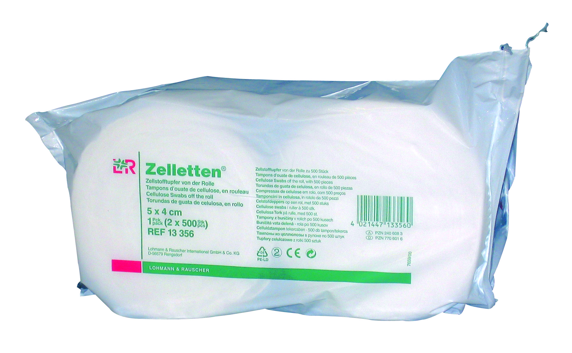 Tupfer aus Zellstoff im Folienbeutel, unsteril.