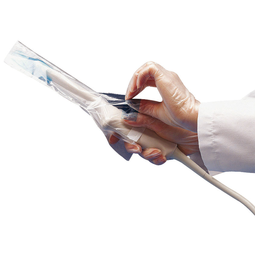 Eine weiche, latexfreie Einweghülle für medizinische Ultraschallsonden/Wandler. Gebrauchsfertig, innen bereits mit Aquasonic 100