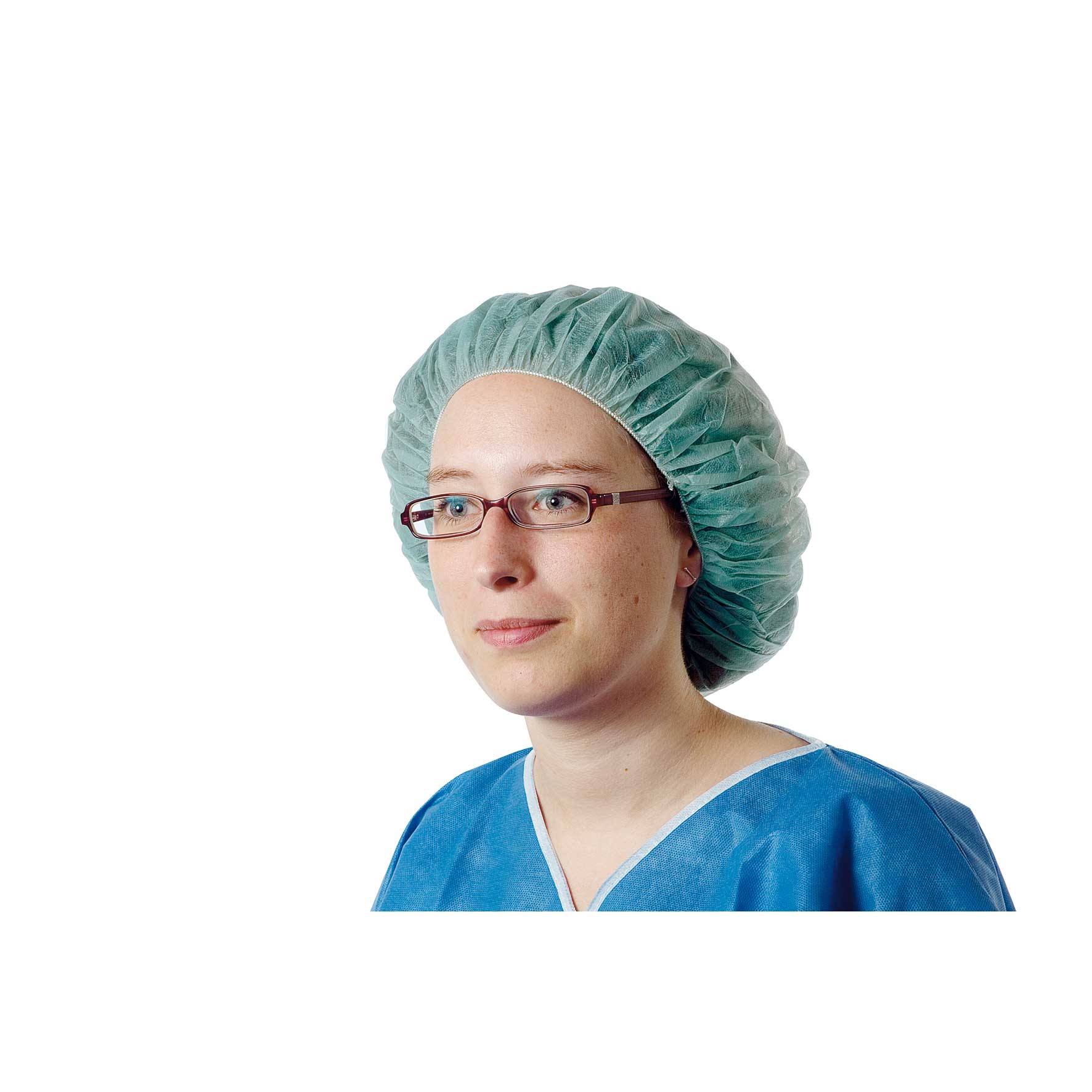 Universelle Baretthaube mit umlaufendem Gummizug, besonders leicht, in Grün und Weiss lieferbar, auch als