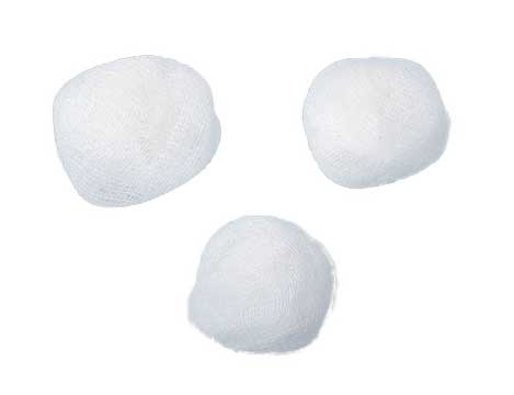 100% Baumwolle, hydrophil, gebleicht. Gaze Typ 20 mit latexfreiem Gummiring, unsteril.